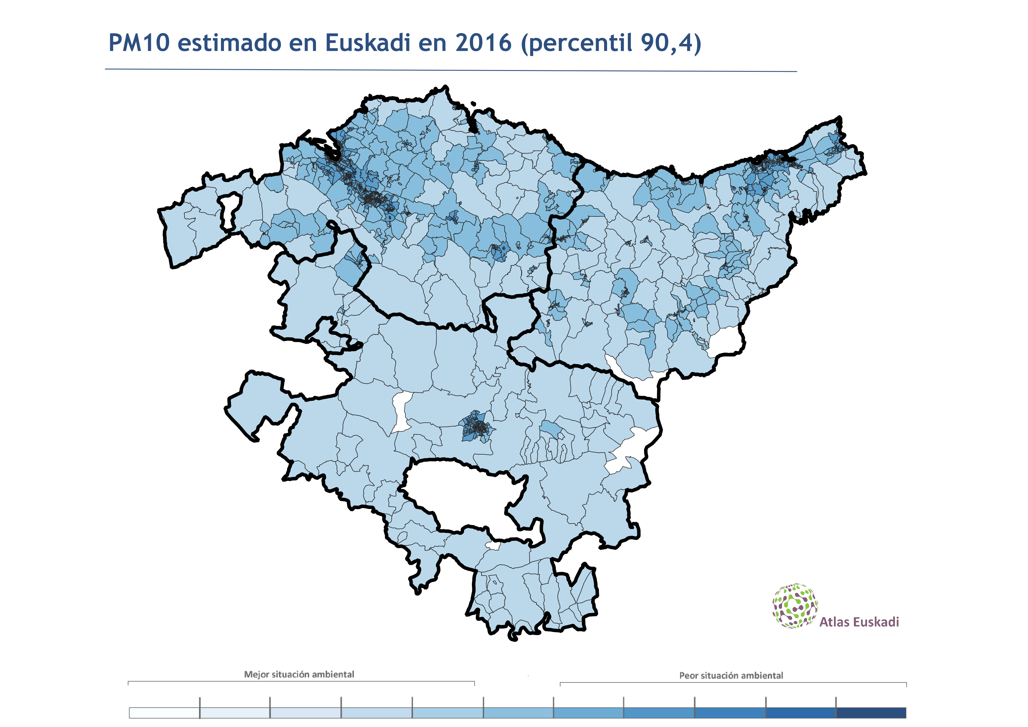 El percentil 90,4 anual del PM10 se ha usado como uno de las variables para el cálculo del índice de privación ambiental de Euskadi. Dicho índice sirve para poder conocer qué zonas en Euskadi tienen una mejor o peor calidad ambiental. Se ha calculado usando el Registro vasco de emisiones y fuentes contaminantes (E-PRTR), el tráfico en Euskadi, la población residente y cinco indicadores de calidad de aire: (1) NO2 media anual, (2) NO2 percentil 99,75, (3) O3 percentil 93,2, (4) PM10 media anual y (5) PM10 percentil 90,4.